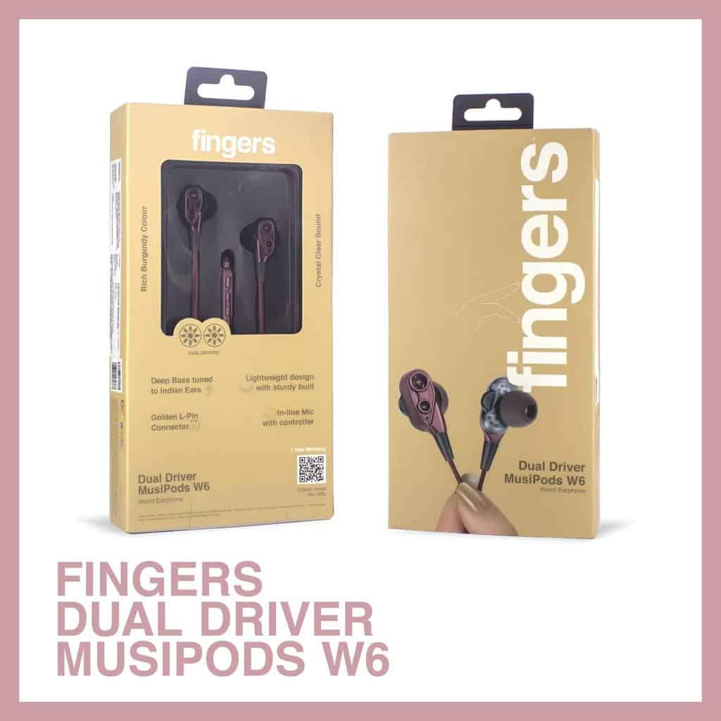 FINGERS Dual Driver Wired MusiPods W6 Earphones with Deep Bass and Mic