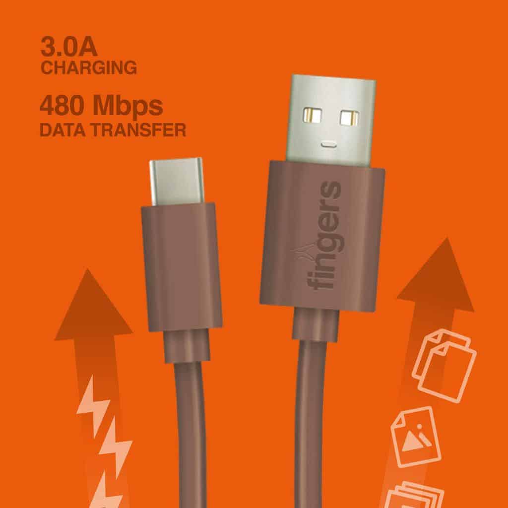 FINGERS FMC-Dual Micro/USBC-03 Fast Charging and Data Transfer Mobile Cable – (Colour- Black) (Brown)