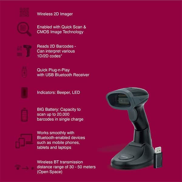 - Reads 2D Barcodes – Can interpret various 1D/2D codes