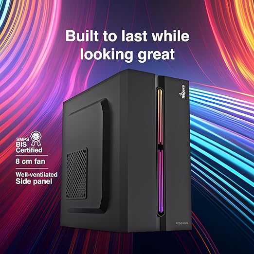 FINGERS RGB-Fortuna Micro-ATX PC Cabinet (with ARGB Lights, 1 x USB 3.0 + 2 x USB 2.0 + HD Audio + Mic in Port, BIS Certified SMPS Included)