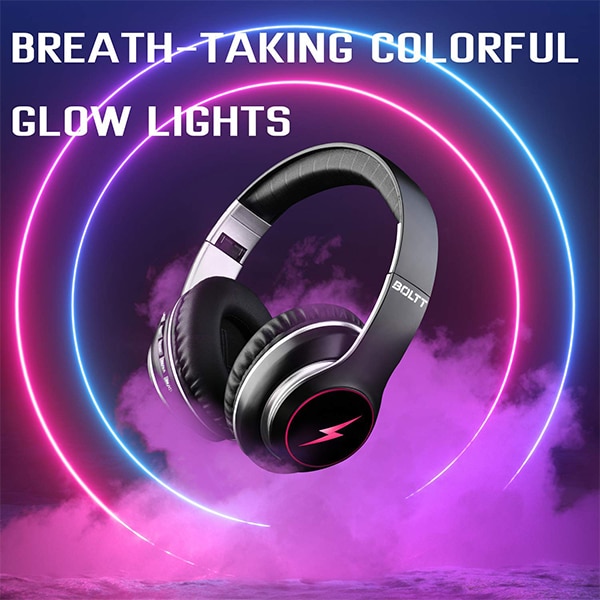 • Breath-taking unique colorful Light & Sound Show: This functional design emits multicolor glow lights lending this wireless bluetooth headphone a super attractive, fashionable and gorgeous look. There are multiple colorful lighting modes; see these lights dance to your favourite songs.!! Use these gleaming lights to increase the aesthetics of the headset. Double press the Call button to activate the Lights effect.