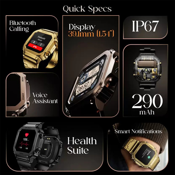 - Smart Notifications: Get alerts for calls, messages, social media updates, and more directly on the watch