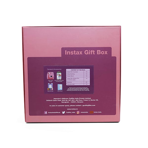 - In Gift Box – Instax Mini 9 Camera + Instax Mini Film Pack 10×1 + Instax Photo Bunting + Instax Photo Album + Batteries + Camera Strap + Warranty Card + Instruction Manual