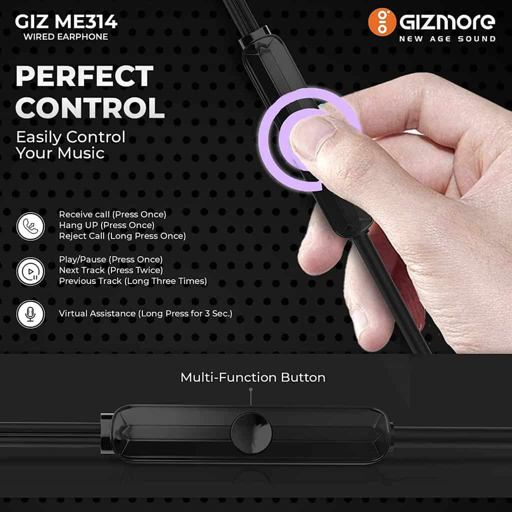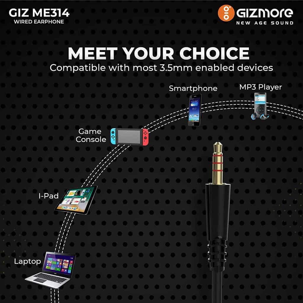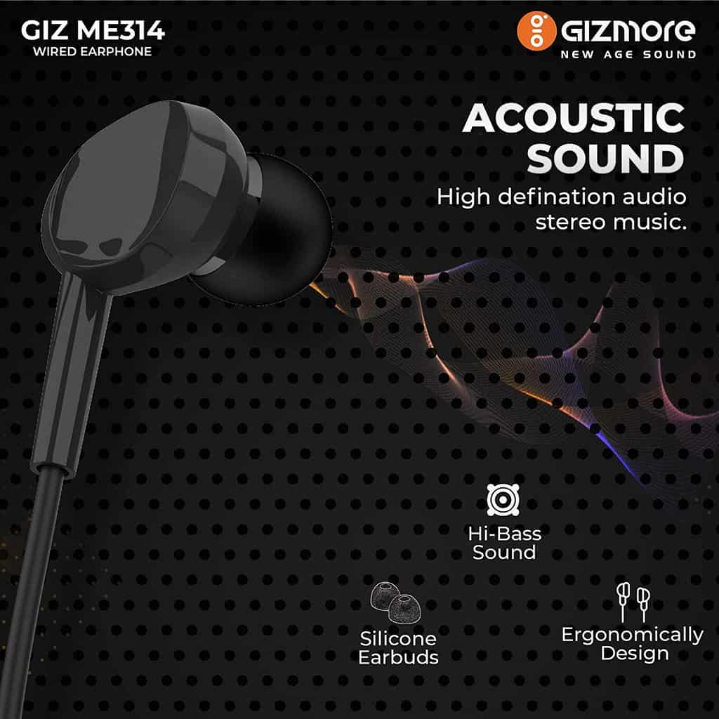 GIZ ME314 comesHi-fi stereo sound: it has perfect stereo sound quality, enjoy full listening comfort with soft, snug ear buds, bringing you the perfect audio enjoyment, In line control with 3 buttons.