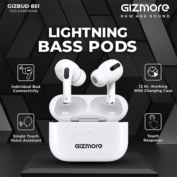 - PLAYTIME: Gizmore TWS 851 bluetooth earbuds gives 12 hours of playtime, so you always know when it’s time to recharge. The charging case is small and easily fits in your pocket