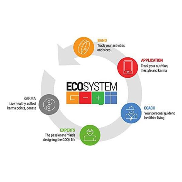 - GOQii Ecosystem GOQii ecosystem combines a Fitness Tracker, an App, Care Team including a Personal Coach, Experts and a Doctor. Through Karma, GOQii enables you to walk, earn and donate karma points to social causes.