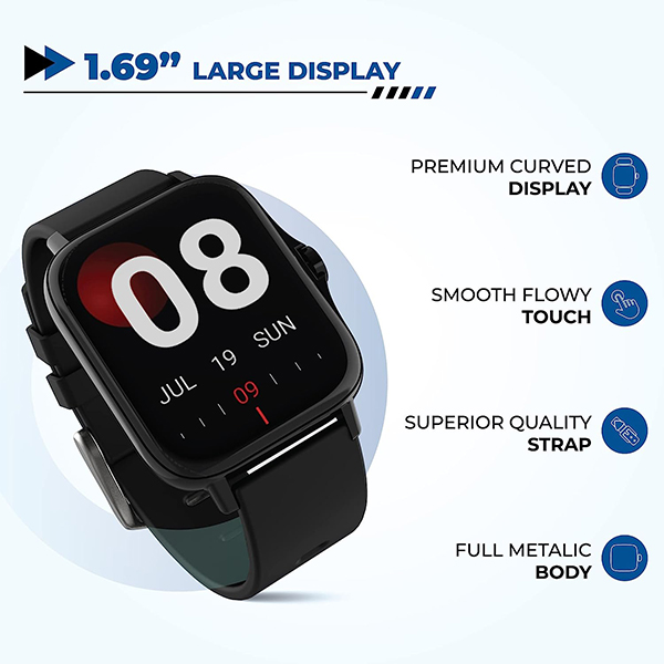 Hammer Pulse 2.0 comes with the latest design and features. Its 1.69″ digital display with HD quality. Stylish design makes it comfortable for wearing for long hours. It suits all kinds of users, men, women, girls, boys. Battery lasts for two-three days with heavy usage, else can last upto 7 days. It is compatible with both Android and iOS devices. It can help you in meeting your fitness goals with various trackers like running, walking, cycling, badminton, football, and many more. It is IP67 water-resistant, it can take splashes of water, and is advised to not use in moderate or heavy water situations, it might void the warranty. Its touch is smooth and is in a rectangular shape. Connect with your phone instantly and enjoy it.