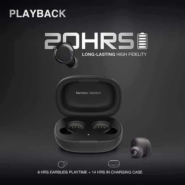 With 20 hours of playback (6 hours playtime in the earbuds + 14 hours from the charging case) Harman Kardon FLY TWS headphones provide the soundtrack to get you through your longest days.