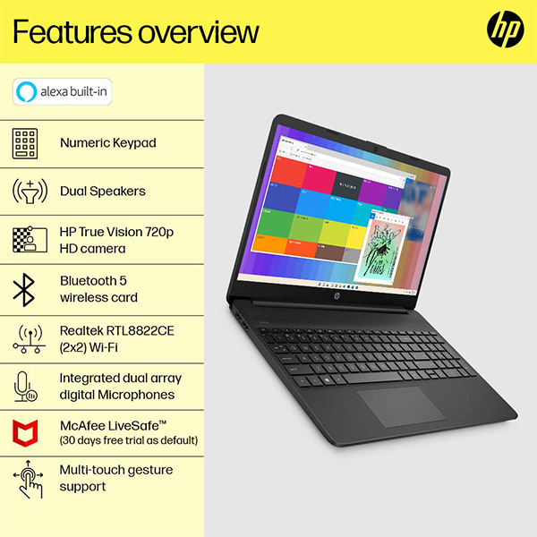 HP Laptop 15s, Intel Core i3-1115G4, 15.6 inch(39.6cm) HD Laptop