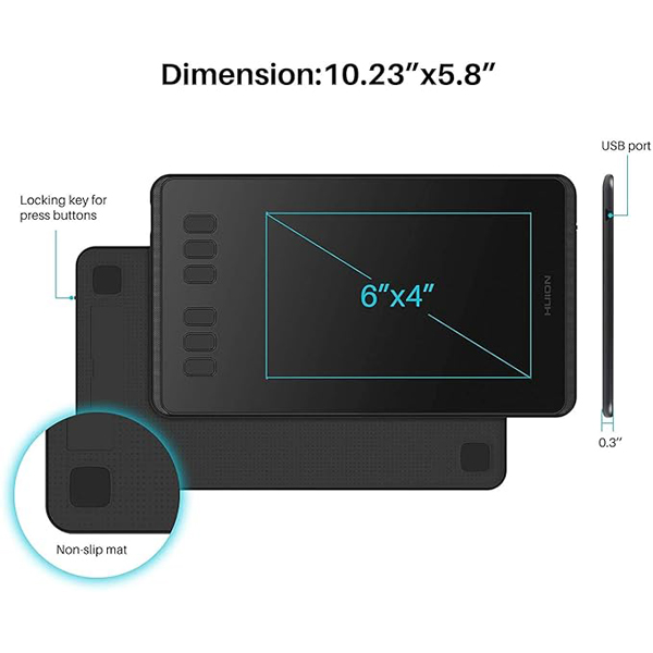 - Compact and Portable: H640P art tablet is designed with slim and compact sized with an active area of 6.3×3.9 inch offering perfect creative space for limited desktop areas.It is easy to carry out and always ready for your creation whenever and wherever. HUION drawing tablets come with one year warranty and they are also very practical gift option.