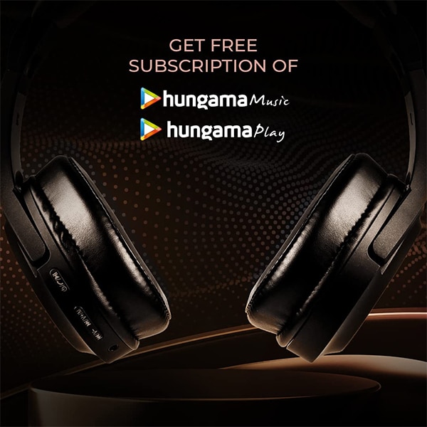 Just tap the card with your NFC phone and get One year free subscription of Hungama Music & Hungama Play. Its 30mW speaker power give out immersive audio quality. A great battery backup of up to 9 hrs of continuous playtime on 50% volume. Leather comfort earmuffs to give you the best comfort of on ear headphones. Instant wireless connectivity with Bluetooth ver 5.0. Easy access controls give you the freedom to control your music seamlessly. Connect to Hungama HiLife Buzz 101 not just by Bluetooth but also via Aux in cable. You can also listen to your music using TF Card & USB or just listen to FM radio. Get One year warranty on this product from the date of purchase.