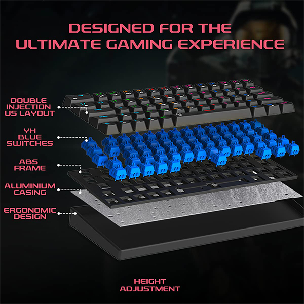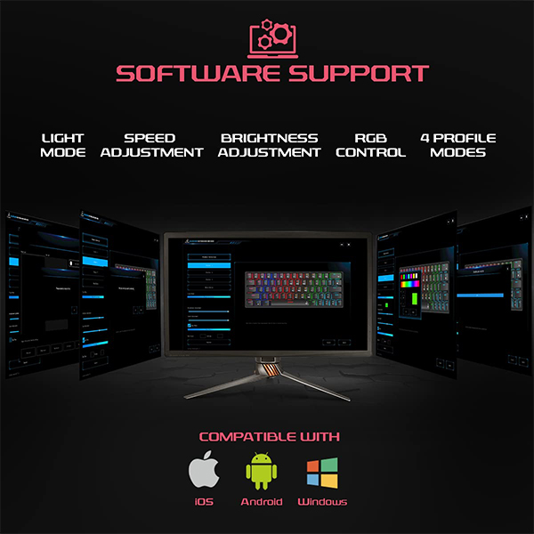 - Model Name: aptor Wired RGB Gaming Keyboard, 64 Backlit Keys, Mechanical Keyboard, PC Software Support, 23 Light Modes, with Dual Angle Stand
