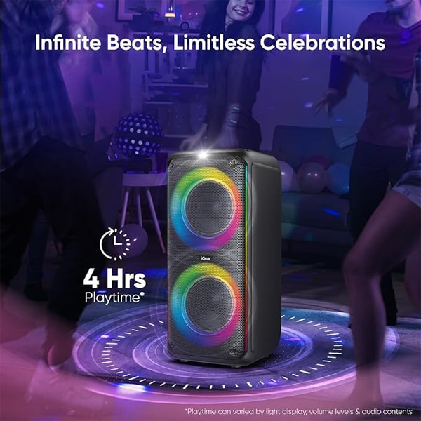 - Dynamic Sound Performance: Immerse yourself in a superior audio experience with the 60W Party Speaker’s meticulously engineered sound system. The dual bass radiators bring depth and richness to your music, ensuring that every beat, rhythm, and melody is delivered with exceptional clarity. From heart-thumping bass drops to crystal-clear vocals, this speaker takes your music enjoyment to a whole new level.