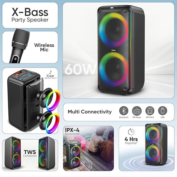 iGear X-Bass 60 Portable Bluetooth Party Speaker