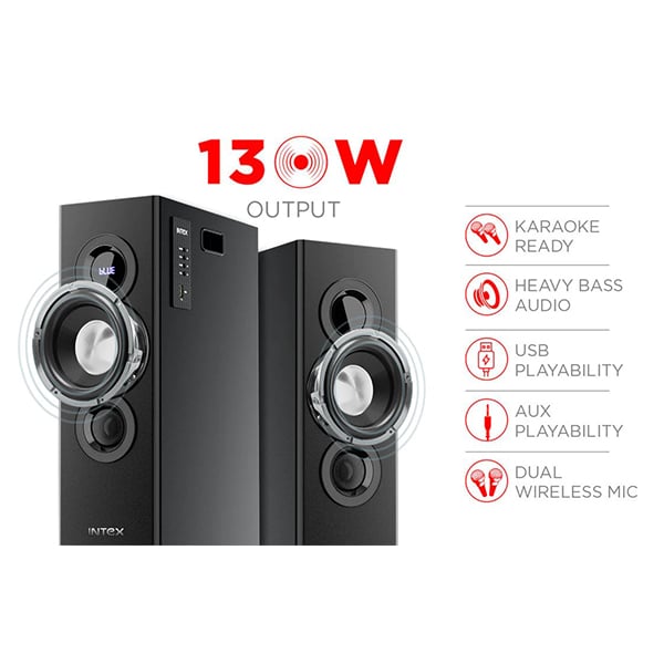 Beats from Intex TW11804 Tower Speaker are engineered to perfection, so they’ll have you grooving all night long. Aesthetically compact design, the speaker is powerful and boasts amazing sound quality. It features 130W power output and bass rich audio system, improved acoustics thanks to the wooden frame, two cordless mics, and IR remote control with full functionality; this will be your go-to device for any musical gathering!