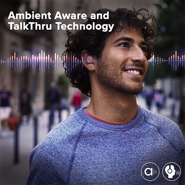Control the world around you. Instantly move from absolute music immersion to focus on your surroundings with Ambient Aware. Chat with your friends without removing your headphones with TalkThru. Just swipe on the earbuds to activate them.