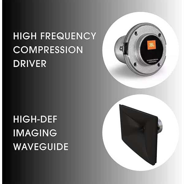 - BE A PRO – With a JBL compression driver straight from the professional world, and integrated treble and bass control, this professional quality, high-performance speaker can be easily adjusted to fit your home.