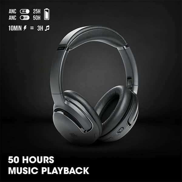 • UP TO 50 HOURS OF PLAYTIME: The JBL Tour One keeps you connected all day long with up to 50 Hours of playtime. With Noise Cancellation ON, get upto 25 Hours of playtime and with NC off and Bluetooth ON, get upto 50 Hours. 10 Min of Charging provides upto 3 Hours of playtime. In the Box package includes Aux Cable for wired listening, in case you run out of complete charge.