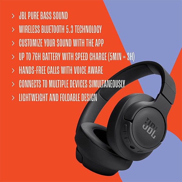 - JBL HEADPHONES APP: By downloading the JBL Headphones app, you can personalize the sound of your Tune 720BT headphones according to your preferences with ease, using the EQ settings. Moreover, the app offers voice prompts in your desired language to guide you through the different headphone features