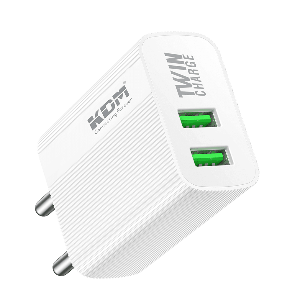 Meet the KM-CH330 Twin charge charger, your travel companion for quick charging. With 17W power from dual USB ports, it includes Type C or Micro USB cables. Featuring 9S protection and an Auto ID chip, this BIS-certified adapter is proudly made in India. Charge smart on the go!