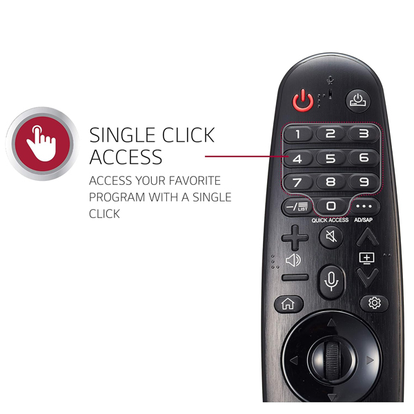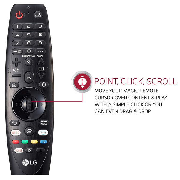 • Magic Motion Remote: The LG Magic AN-MR19BA is a Magic Motion remote, allowing for intuitive control using point-and-click navigation. Similar to a computer mouse, you can move the pointer on the screen by simply moving the remote, making it easier to select menus, apps, and content.