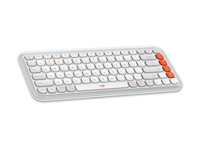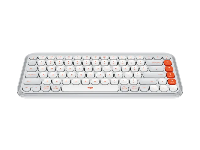 Logitech POP Icon Keys Wireless Keyboard Off White – Orange A compact wireless keyboard with bold design and customizable Action Keys.
