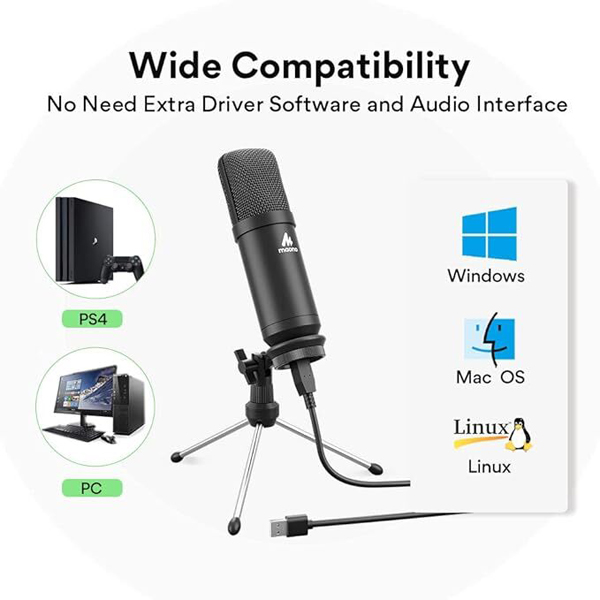 - Plug and play: The microphone has USB 2.0 data port, easy to connect with your computer and Linux system and no need extra driver software or an external sound card or phantom power device, The magnet ring, on USB cable, has a strong anti-interference function