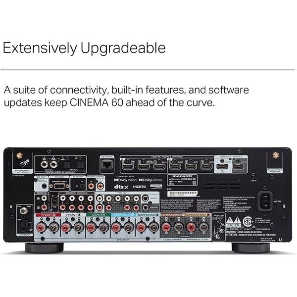 - HASSLE-FREE SETUP – Setting up your Marantz Cinema 60 AVR is made easy with the Audyssey MultEQ XT32 automatic room acoustic correction. The HD on-screen graphical user interface makes navigating menus, selecting sources, and tuning your AVR an easy task