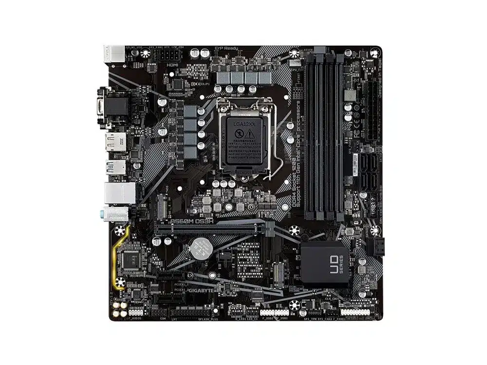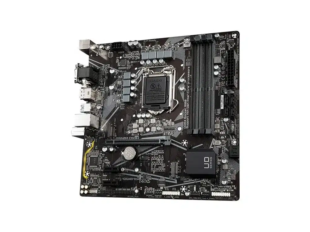 GIGABYTE B560M DS3H (LGA 1200/ Intel/ B560/ Micro-ATX/Dual M.2/ PCIe 4.0/ USB 3.2 Gen1/ GbE LAN/Motherboard)Supports 11th and 10th Gen Intel Core Series ProcessorsDual Channel Non-ECC Unbuffered DDR4, 4 DIMMsDirect 6+2 Phases Digital VRM Solution with Low RDS(on) MOSFETsDual Ultra-Fast NVMe PCIe 4.0/3.0 x4 M.2GIGABYTE Exclusive 8118 Gaming LAN with Bandwidth Management