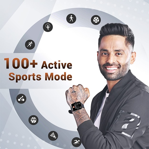 - Other Features: Call Accept Option, Hindi UI Support, 100+ Sports Mode & Watch Faces, Customize your own watch face with any picture from gallery