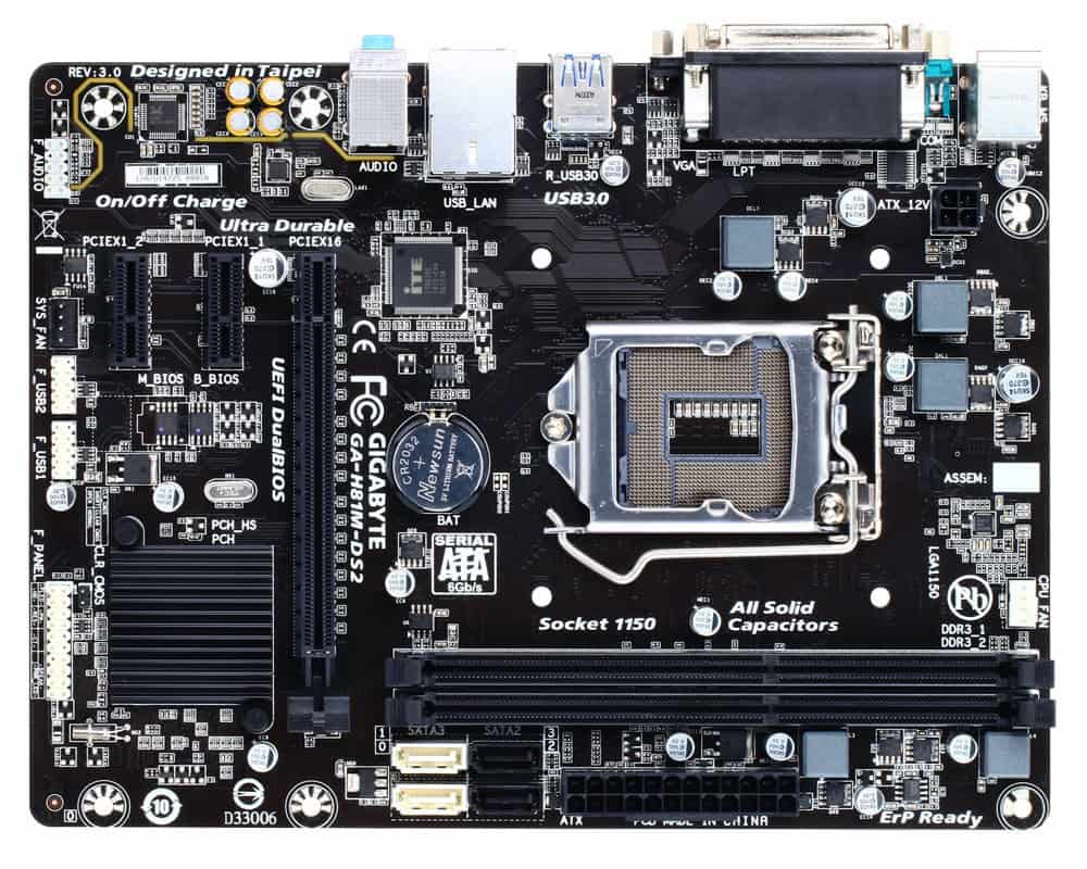 Support for Intel Core i7 processors/Intel Core i5 processors/Intel Core i3 processors/Intel Pentium processors/Intel Celeron processors in the LGA1150 package L3 cache varies with CPU Intel H81 Express Chipset 2 x 1.5V DDR3 DIMM sockets supporting up to 16 GB of system memory * Due to a Windows 32-bit operating system limitation, when more than 4 GB of physical memory is installed, the actual memory size displayed will be less than the size of the physical memory installed. Dual channel memory architecture Support for DDR3 1600/1333 MHz memory modules Support for non-ECC memory modules Support for Extreme Memory Profile (XMP) memory modules Integrated Graphics Processor – Intel HD Graphics support: 1 x D-Sub port, supporting a maximum resolution of 1920×1200 Maximum shared memory of 1 GB Realtek ALC887 codec High Definition Audio 2/4/5.1/7.1-channel * To configure 7.1-channel audio, you have to use an HD front panel audio module and enable the multi-channel audio feature through the audio driver. Realtek GbE LAN chip (10/100/1000 Mbit) 1 x PCI Express x16 slot, running at x16 2 x PCI Express x1 slots (The PCI Express slots conform to PCI Express 2.0 standard.) 2 x SATA 6Gb/s connectors (SATA3 0/1) supporting up to 2 SATA 6Gb/s devices 2 x SATA 3Gb/s connectors (SATA2 2/3) supporting up to 2 SATA 3Gb/s devices Up to 2 USB 3.0/2.0 ports on the back panel Up to 6 USB 2.0/1.1 ports (2 ports on the back panel, 4 ports available through the internal USB headers) 1 x 24-pin ATX main power connector 1 x 4-pin ATX 12V power connector 2 x SATA 6Gb/s connectors 2 x SATA 3Gb/s connectors 1 x CPU fan header 1 x system fan header 1 x front panel header 1 x front panel audio header 2 x USB 2.0/1.1 headers 1 x Clear CMOS jumper 1 x PS/2 mouse port 1 x PS/2 Keyboard port 1 x parallel port 1 x serial port 1 x D-Sub port 2 x USB 3.0/2.0 ports 2 x USB 2.0/1.1 ports 1 x RJ-45 port 3 x audio jacks (Line In, Line Out, Mic In) iTE I/O Controller Chip 2 x 64 Mbit flash