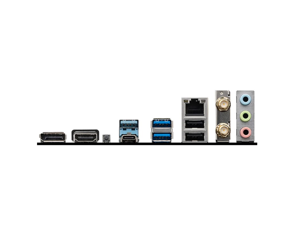| Back Panel I/O Ports | DisplayPort HDMIâ„¢ Flash BIOS Button USB 5Gbps Type-A 2.5G LAN Wi-Fi / Bluetooth Audio connectors USB 5Gbps Type-C USB 2.0 |
