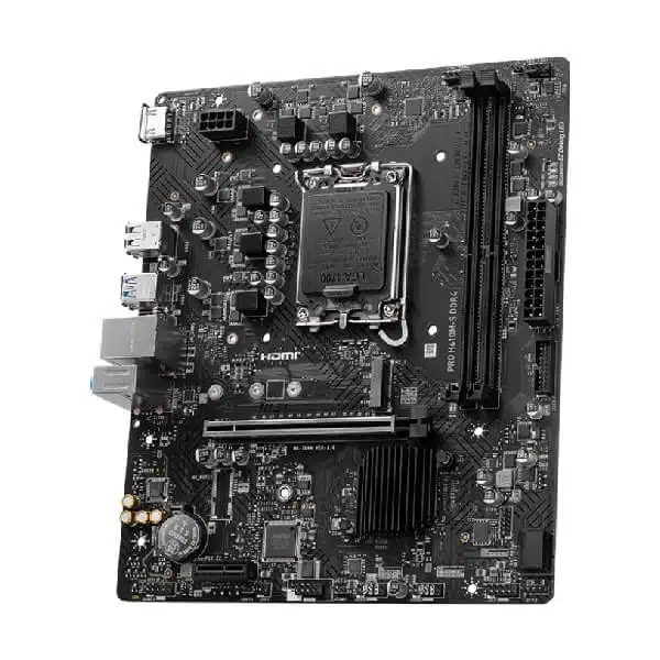 MSI Pro H610M-S DDR4 Motherboard is a micro-ATX motherboard for Intel Core 14th/13th/12th Gen Processors for LGA1700 Socket with Lightning Gen4, 2x DDR4 Memory Slots, 1x M.2 and 2x SATA 6G Slots