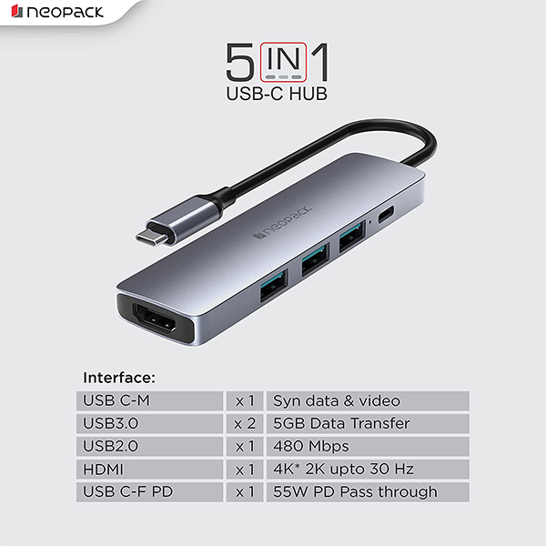 Neopack 5 in 1 USB C Hub Multiport Adapter