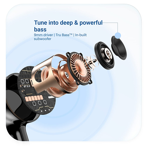 - 9mm speaker driver with Tru Bass & inbuilt subwoofer: Immersive yourself in your favourite music