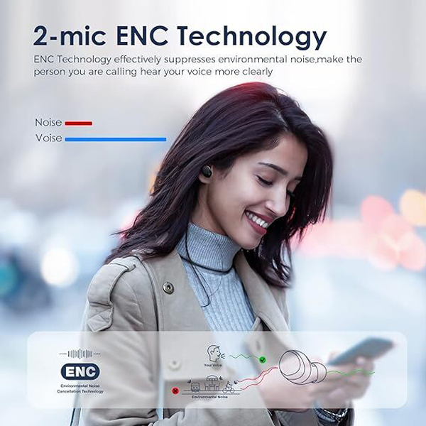 - 【Environmental Noise Canceling for Clear Call】2-mic ENC technology effectively suppresses environmental noise, making the person you are calling hear your voice more clearly. it’s a perfect investment for people who like to have immersive gaming or music listening experience.