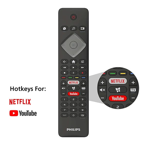 - Remote Control Description: One Click Netflix, YouTube and Philips App Gallery Button