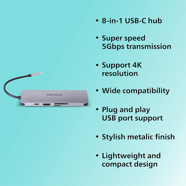 - Model: Philips 8 in 1 USB DLK5518C/94 USB Hub