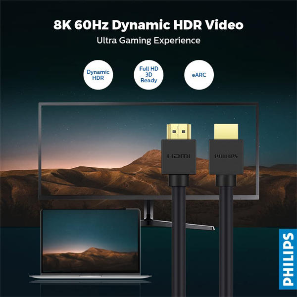 - 1. Stunning 8K Visuals: Experience the pinnacle of visual excellence with the PHILIPS SWV9433 HDMI Cable, delivering breathtaking 8K resolution for ultra-realistic and immersive viewing.