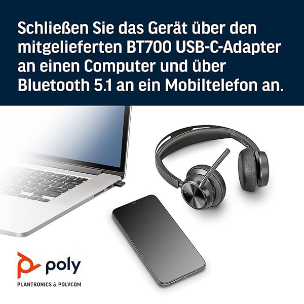 • Multiple device connections: Connect to a computer with the included BT700 USB-A adapter and to a mobile via Bluetooth v5.1.