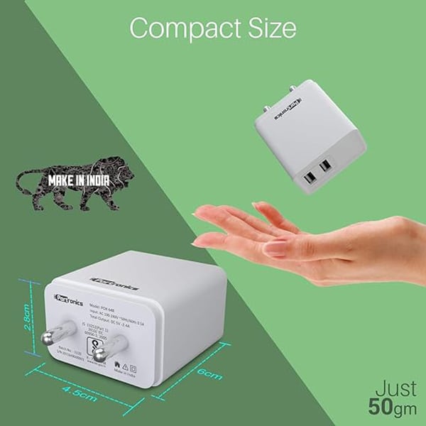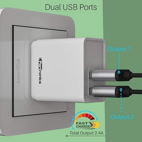 Portronics Adapto POR-648 2.4A Quick Charging Dual USB Port Wall Adapter