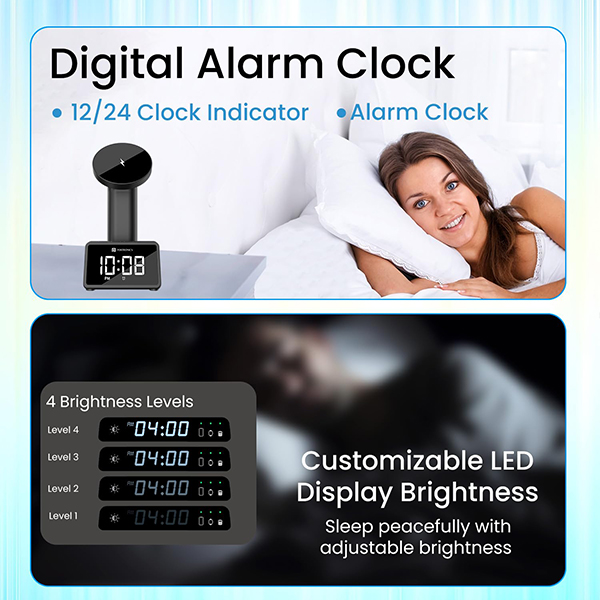 - 4 Display Brightness Level: 4-level brightness control lets you personalize your experience for optimal comfort. Dim the LED clock for a restful night’s sleep or a distraction-free workspace, all while staying on track.