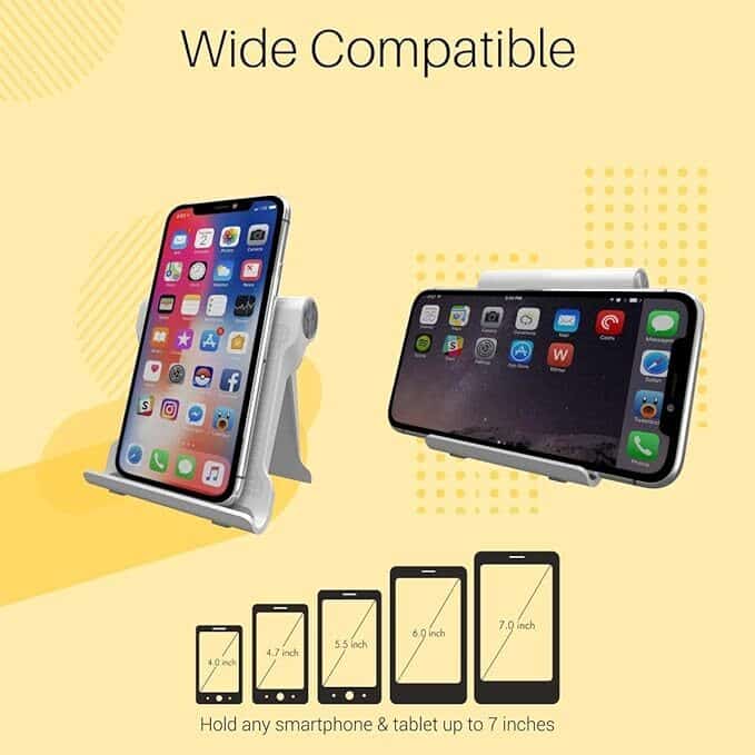 - [MULTI-TASK LIKE A PRO] : Now go Hands-free while watching videos, playing games, listening to music, making phone calls, studying, or even Facetime-ing your friends. With a sleek look and textured finish, it is the perfect accessory for your desk/ nightstand while at home, and even while traveling.