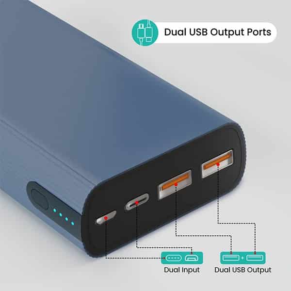 - [Dual USB Output Port] : The power bank has dual USB output ports that allows for seamless cross charging for the strongly built 20000mAh battery! The device has precision ports that give glitch-free output for device longevity!