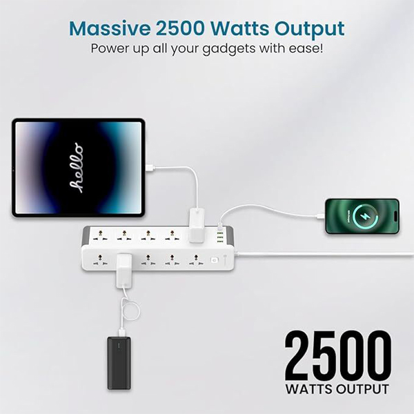 - 2500 Watts Output: With an output capacity of 2500 Watts, this extension cord is capable of handling powering of multiple devices with ease, ensuring stable power delivery.