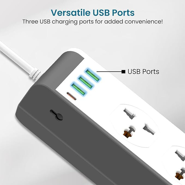 - 3 USB Charging Ports: Equipped with three USB ports, it allows you to conveniently charge multiple USB-powered devices without the need for extra adapters or plugs.