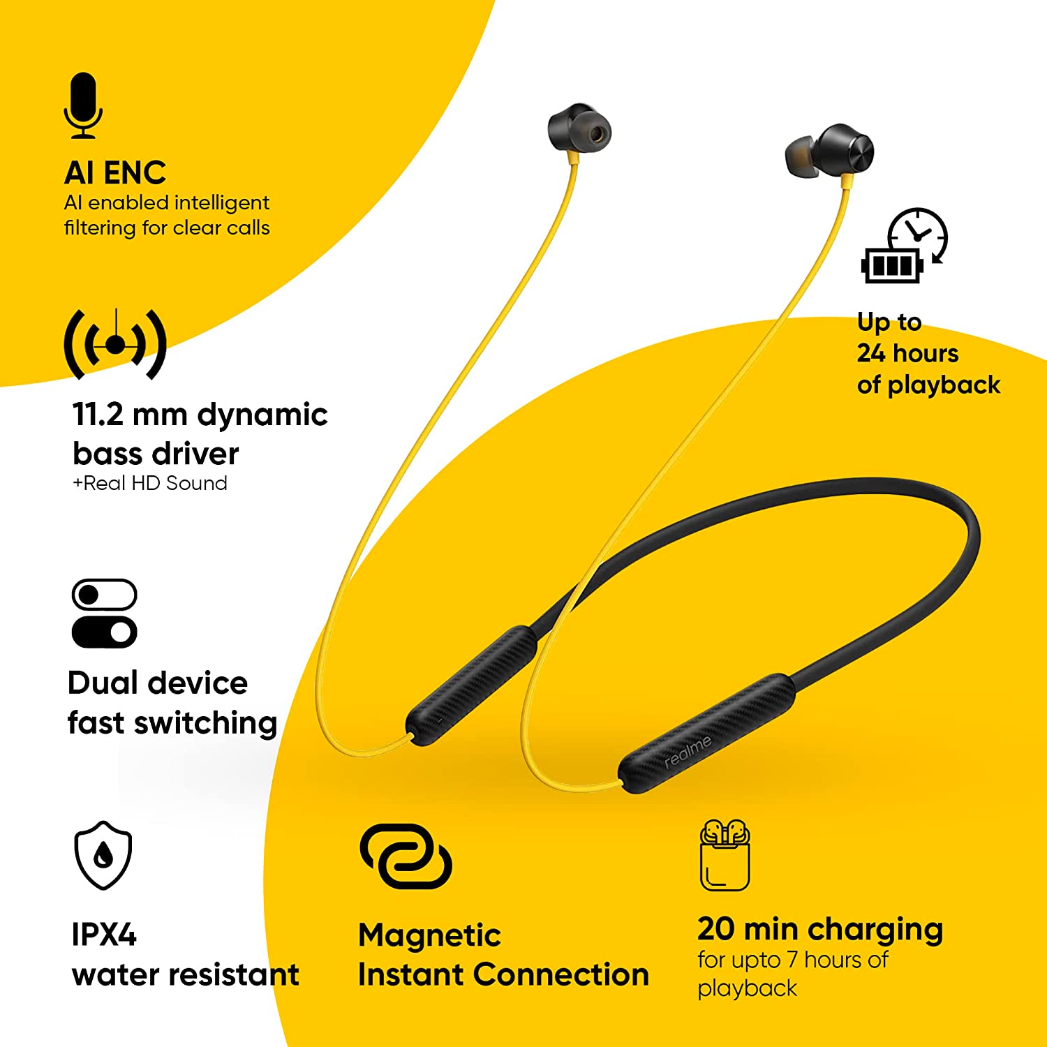 realme Buds Wireless 2S in Ear Earphone with mic, Dual Device Switching & Type C Fast Charge & Up to 24Hrs Playtime, Bluetooth Headset Neckband (Black)