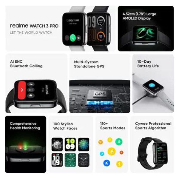 - Bluetooth Calling: The Realme Watch 3 Pro supports Bluetooth calling, allowing you to make and receive calls directly from the watch when connected to your smartphone. This is especially convenient when you’re on the move or don’t want to pull out your phone.