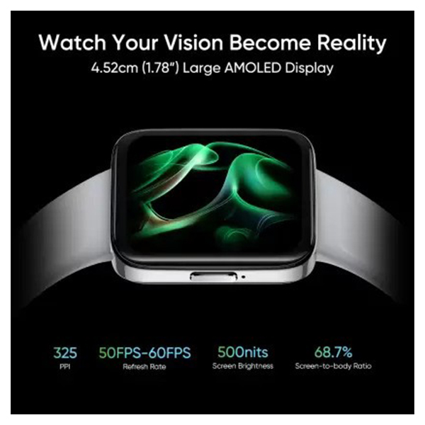- 1.78-inch AMOLED Display: The smartwatch features a large, vibrant 1.78-inch AMOLED display that provides crisp, clear visuals with vivid colors and deep contrasts. The AMOLED panel ensures a rich display, making it easy to view notifications, fitness data, and watch faces.