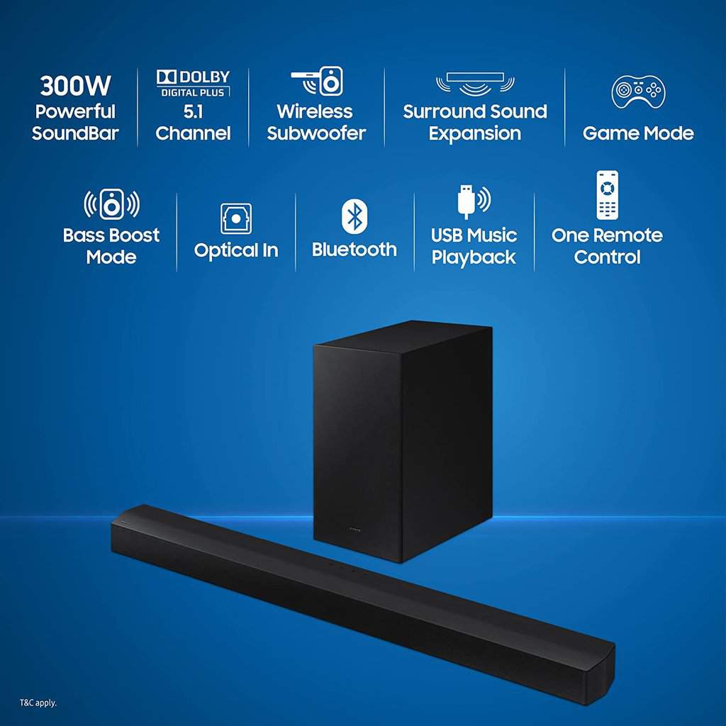 Samsung HW-B450/XL 2.1 Channel Dolby Digital Soundbar, Bluetooth (Powerful Bass, Black)